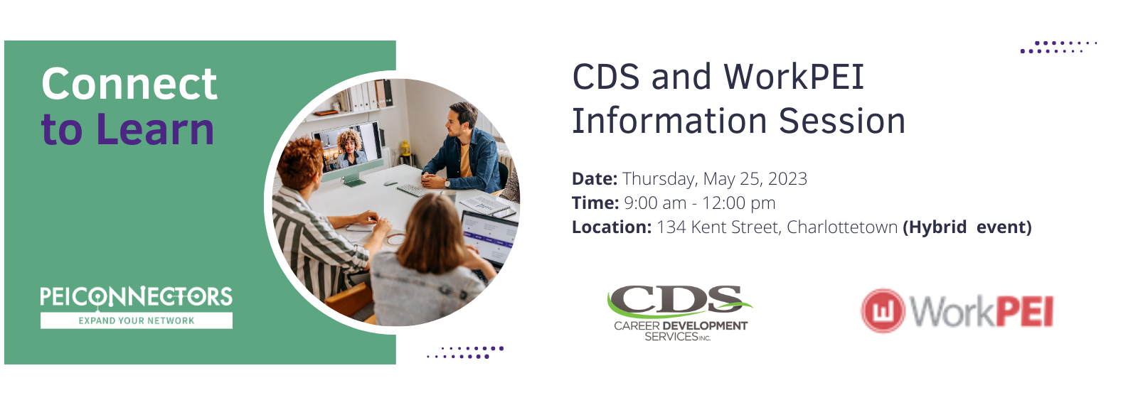 Join us in person or online for an information session where you will learn about the services offered by both PEI Career Development Services (CDS) and WorkPEI, and how they can support your job search journey.
